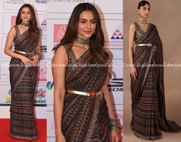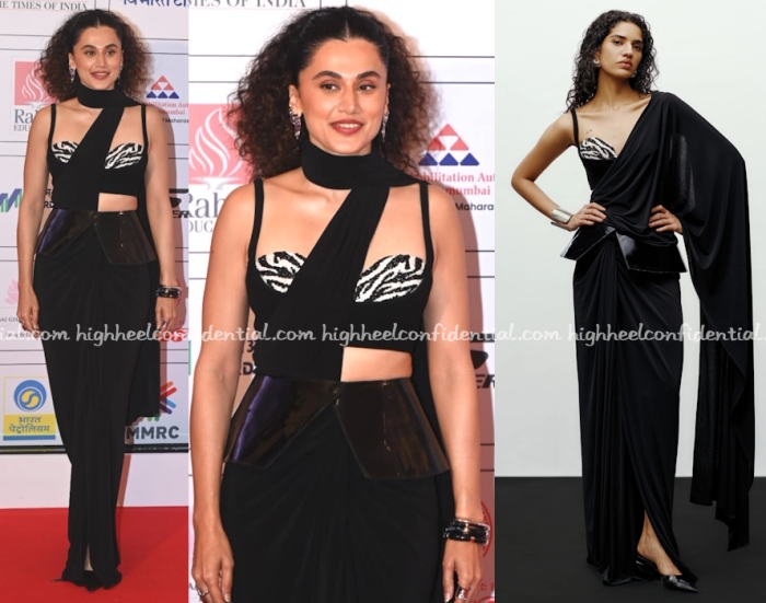 Taapsee attended an awards event wearing a draped sari from 431-88 by Shweta Kapur and once more the person wearing it didn’t do any justice to the original line. The model drape was so striking and swaggilicous but by draping the pallu around the neck, Taapsee made the upper part so busy. Did not like it one bit.