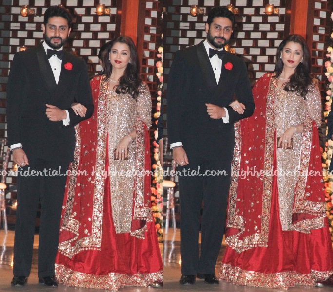 Aishwarya always looks better with softer colours less makeup and less bling. She looks as OTT as it gets. Abhishek looks smart.
