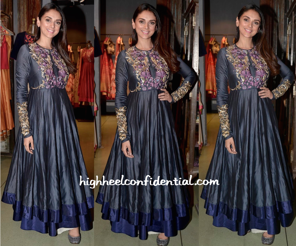 Wearing a Jade By Monica And Karishma suit, Aditi attended an event at the designer duo’s Mumbai store. Keeping the styling simple, the actor finished out the look with a pair of jootis. She looked nice.