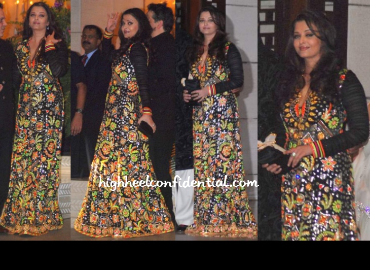 I don’t know why but everytime this woman makes a public appearance it excites me. But this dress is horrible. I love Aish, but c’mon nobody should be wearing this. There’s too much going on in the dress, way too many colors. Abu-Sandeep are not good designers. I think she wears their clothes because she feels she has to whenever she’s at their event. She should boycott them.