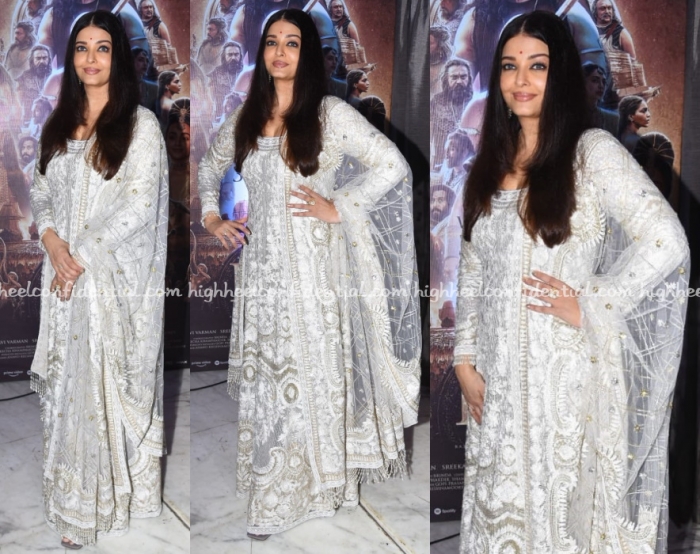 For the Mumbai leg of PS1 promotions, it was another Manish Malhotra for Ms. Rai. It wasn’t as garish as the red one but it wasn’t any better either. Could the outfit have been be salvaged by better finishing touches? Perhaps. But as is, I didn’t care for it. Did you?