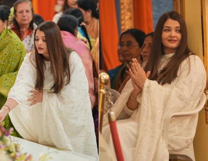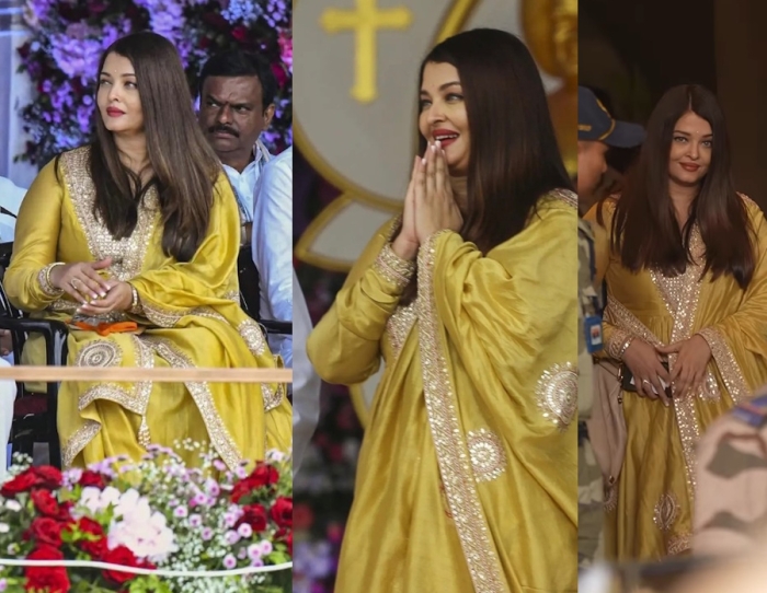 Aishwarya attended a centenary celebration and was seen in an orange anarkali from Faabiiana and a white outfit from Sukriti & Aakriti. Unfortunately, no full-length pics are out of her so can’t really comment much besides saying good to see her sport a color other than black.