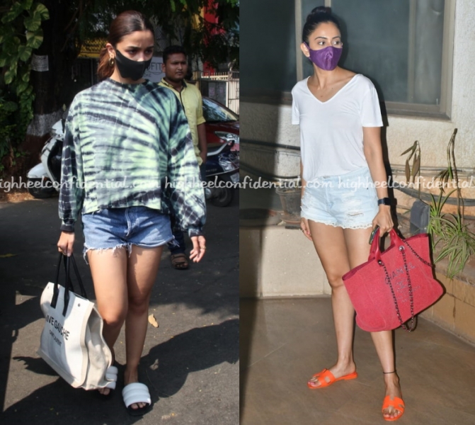Alia and Rakul were spotted sporting denim shorts with slipons and totes but while the former wore hers with a tie-dye sweatshirt, the latter picked a basic white tee. Which of the two outfits are you more drawn to?