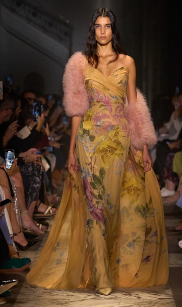 Alia attended a gala dinner at the ongoing Red Sea International Film Festival wearing a strapless floral painted gown from Elie Saab‘s Autumn/Winter 2025/2026 collection. Am glad she skipped on the pink shrug here. This was a simple and striking look and she looked good in it.