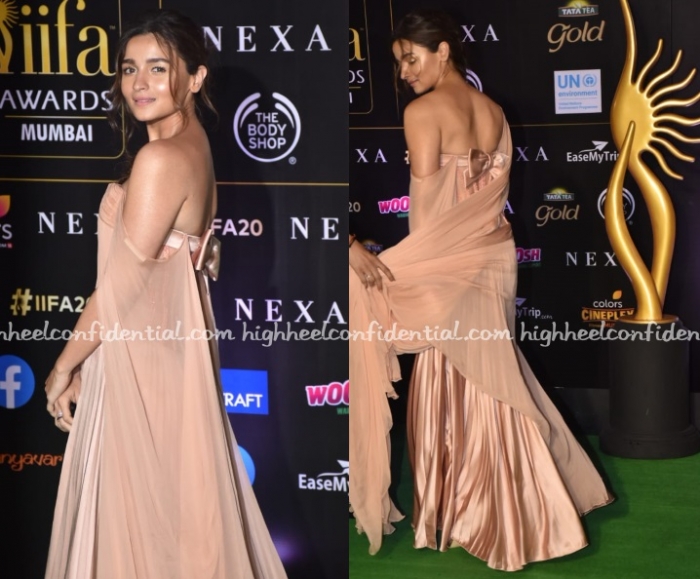 In minority maybe but I think she looks pretty. Not doing the same fresh faced or the tried and tested dark lip white washing makeup, I quite like the intentional heavily bronzed makeup. The dress itself is nothing much to talk. about, but I like the way Alia has styled it.