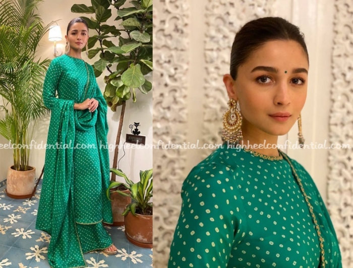 I love the green suit…its so beautiful. Alia looks lovely even though she is sporting signature Sabya hair n makeup.