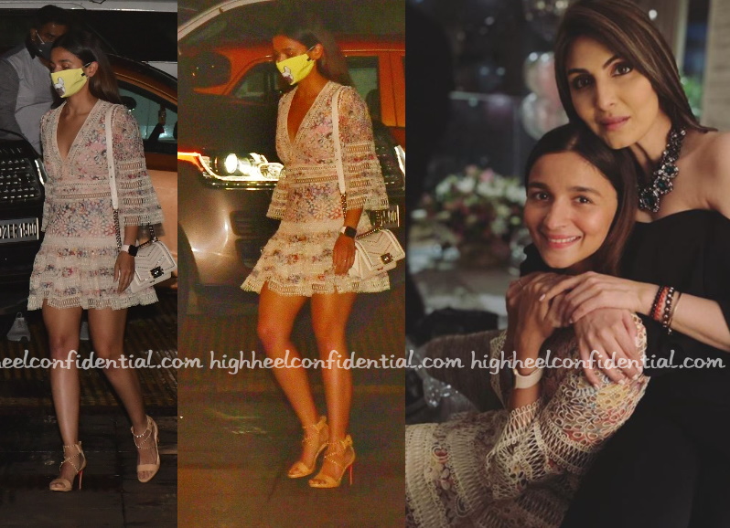 Alia attended a birthday party on Monday evening wearing her Zimmermann dress again, this time with Louboutin sandals and a Chanel Boy bag. We sure approve.
