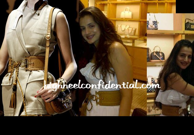 Alas, that is not what Ameesha did. Instead, she did worse but wearing a Gucci Spring 2011 belt with a strapless dress. Let’s hope for Vuitton‘s sake that she, at least carried an LV bag!
