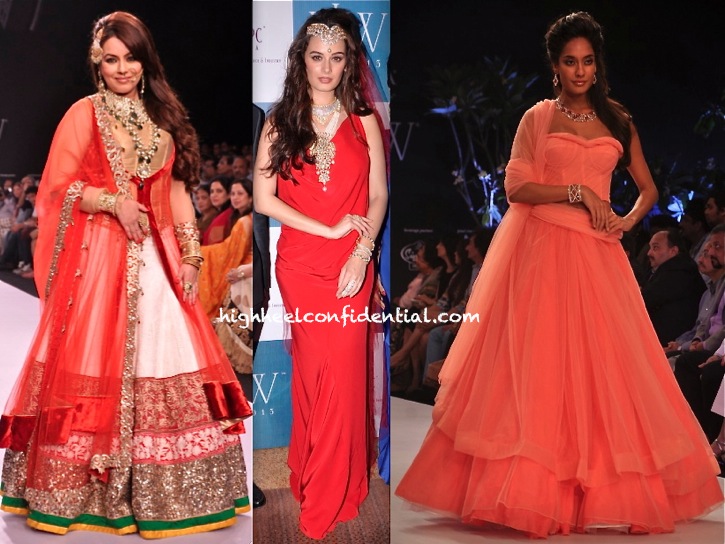 L To R: Mahima Choudhary For Shobha Shringar, Evelyn Sharma For Gehna And Lisa Haydon For Nirav Modi