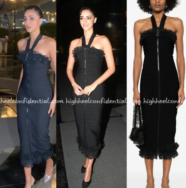 Post attending the event, she attended the wrap party of her movie in a different dress but same sparkly sandals while arriving but switched to Chanel slingbacks while leaving.