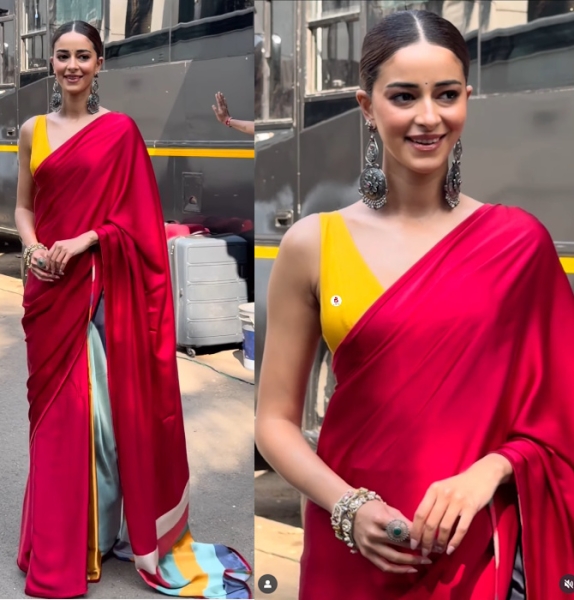 Promotions for her movie saw Ms. Panday in a sari from Kshitij Jalori paired with silver oxidised earrings which I hope for her sake was not as heavy as they look.
