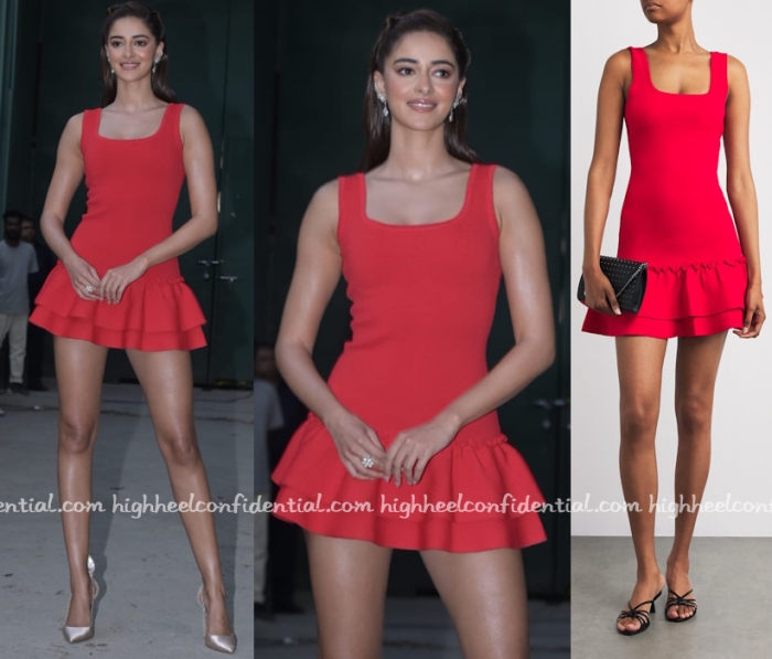 Ananya kicked off promotions for her movie wearing a red Sandro dress with sky-high satin pumps. The girl’s got great stems but I didn’t think this pairing was working. The frock with those pumps just looked odd.