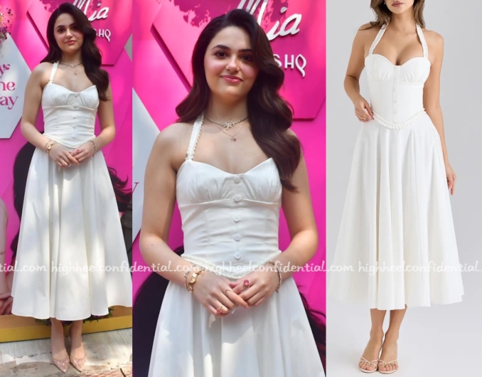 Aneet was seen at an event promoting a jewellery line wearing a halter neck dress from House Of CB paired with jewelled mesh pumps. I may not care for that dress, but given that the jewellery itself was rather simple, it was good move to pick a meh dress that didn’t distract from the jewellery.