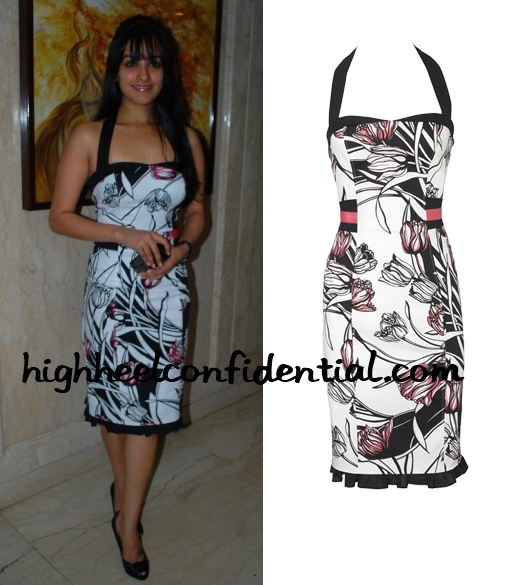 Ms. Hassanandani was spotted in another Karen Millen dress, this time in a tulip print one. I don’t care for the dress much but have to give her props for not spoiling the dress with extra-pointy pumps. 😛