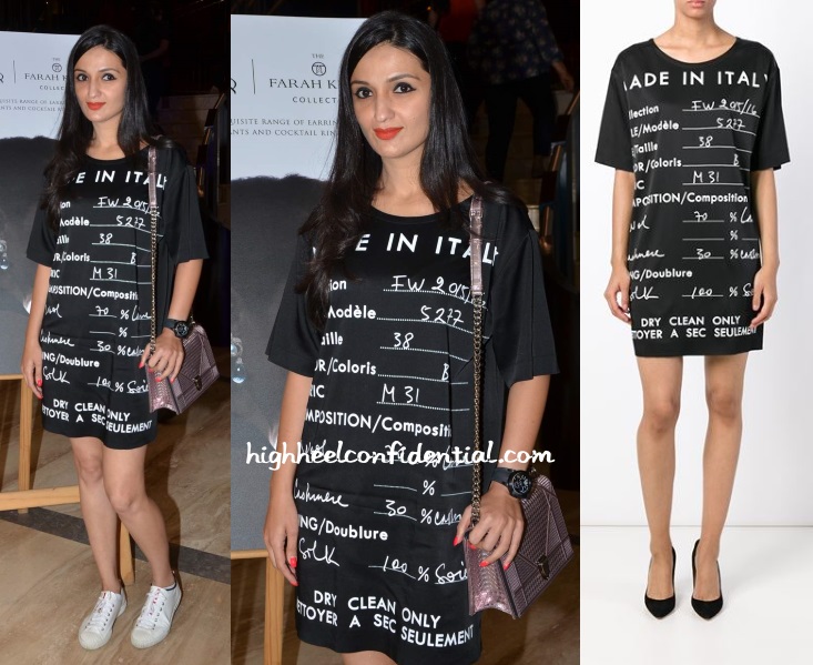 She got a bulk discount i guess. but jokes apart she can carry off these moschino dresses quite well. on others it might look like night gown 🙂