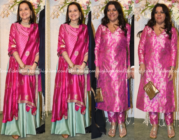 Anupama and Zoya were seen at the big reception in Raw Mango with the former wearing a pink and mint green lehenga and the latter a brocade matching kurta suit. I mostly love all things Raw Mango and hence loved both outfits.