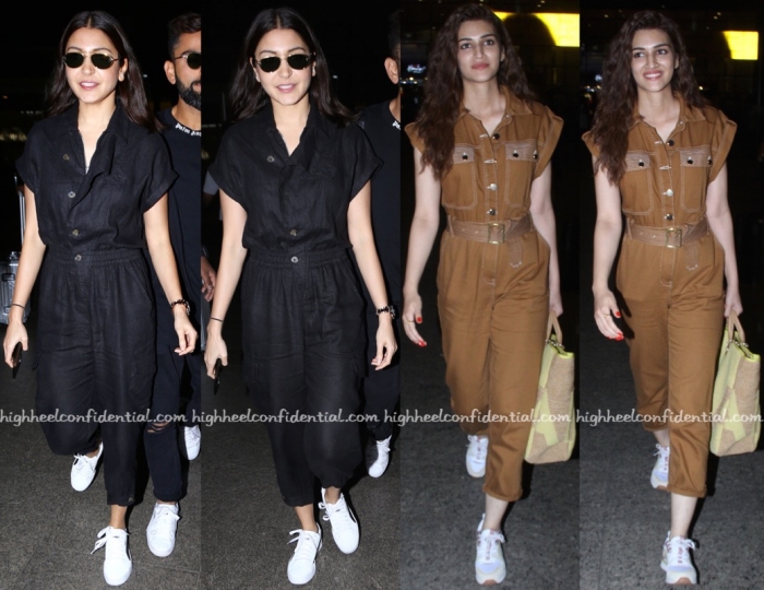 Anushka Sharma (Left) And Kriti Sanon Photographed At The Airport