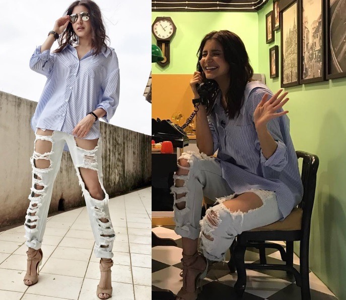 Never imagined that she can show up like this. Dont mind the white denim but that top is ridiculous. The other denim, Oh my! Anushka, please dont get into that stupid wannabe bandwagon like others.