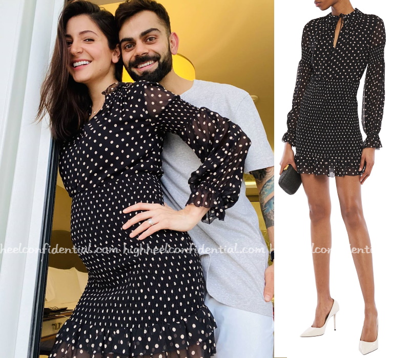 Anushka and Virat took to social media to announce Anushka’s pregnancy on Thursday in which Anushka was spotted wearing a polka dot Nicholas dress.