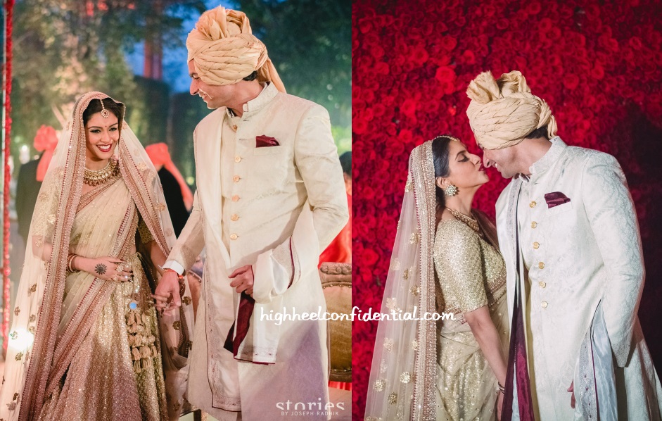 Agree with others Vera Wang gown isn’t meant for her body type! Lehenga is beautiful though – unusual choice of colours, the make-up and jewellery is tasteful. Congratulations!
