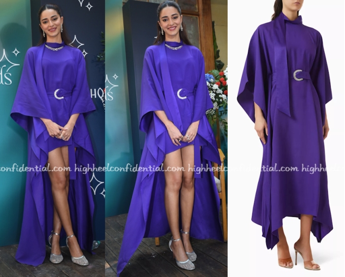 Ananya attended an event for a jewellery brand and was seen wearing a kaftan from Taller Marmo. The original kaftan was ankle-length which seems to have been modified here to show off Ms. Panday’s stems. I get playing to your strengths but here it looks just a wee bit odd. Also those sandals are grabbing attention more than the jewels here.