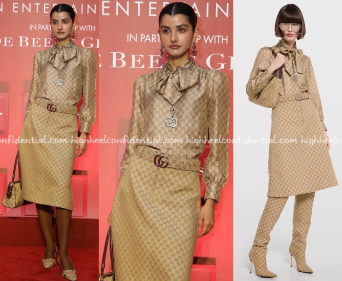 Ayesha attended THR’s soiree on Wednesday wearing Gucci head to toe. The thing is, these head to toe logo looks work for a fashion editorial but not quite in real life. In her case, I actually don’t mind the jewellery top and skirt, but the pumps and the tote bag look really awkward.