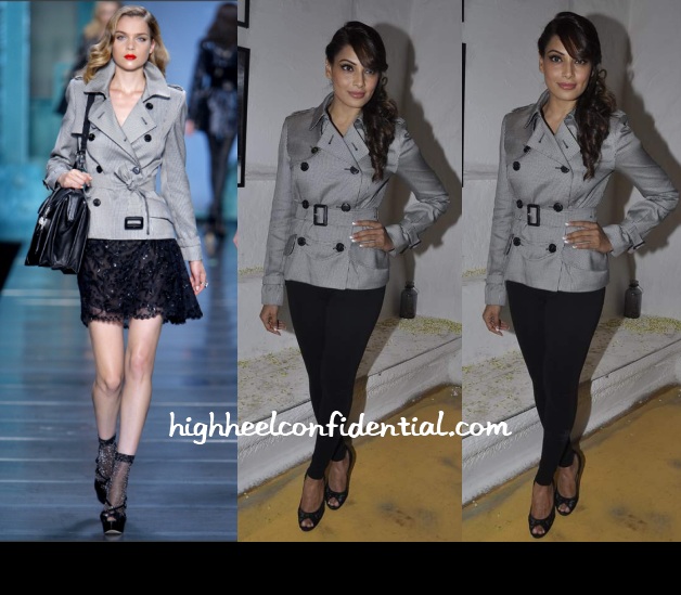 It was a Dior trench jacket again for Bipasha this time paired with black leggings and peep-toe pumps. I would’ve preferred black denims vs the leggings material but other than that minor gripe, think she looks amazing!