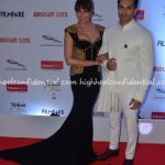 Bipasha and Karan both picked Shantanu and Nikhil to wear to the Filmfare Glamour and Style Awards. Bipasha’s armor style bustier gown may not be one that we liked instantly but the look worked on her.