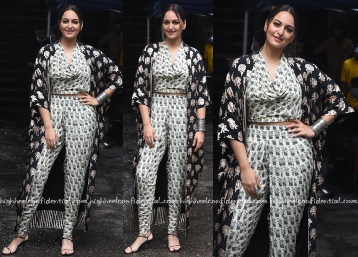 Wearing a Dar Sara gown with a sprawling train, Malaika attended (and helped judge) a recent pageant. Matching gold-toned ankle-strap sandals aside, her accessories for the evening included jewelry by Farah Khan and a Judith Leiber clutch.