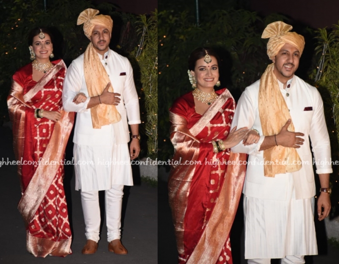Back on the sets of her television show, Shilpa was photographed in a Neetu Rohra gown. Jewelry by Ranu Oberoi rounded out her look; the green against the mustard made for a nice contrast. It’s a dress that’s right up Ms. Shetty’s alley and one that she wears well.