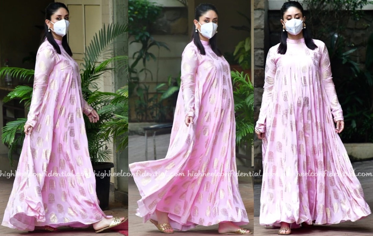Kareena stepped out wearing a hot-pink Masaba anarkali recently. Understated earrings and pair of gold-toned sandals rounded out the actor’s look. The voluminous silhouette worked for her, as did the color; Kareena looked nice.