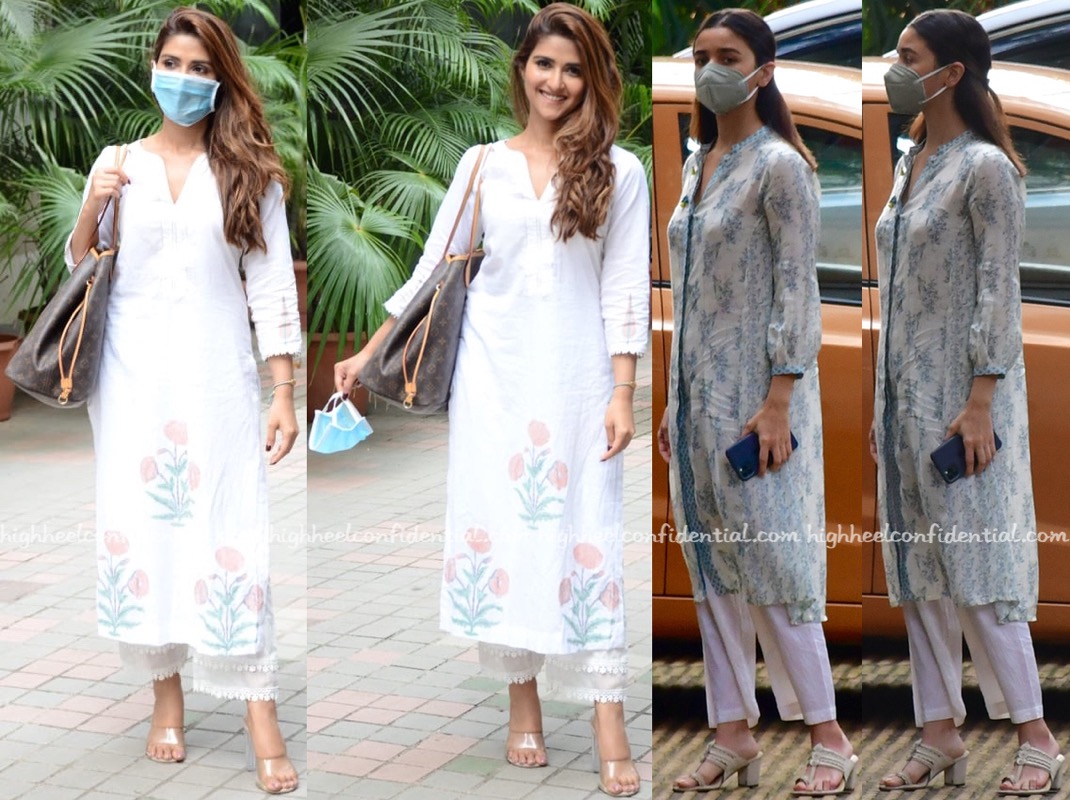 For a recent outing, both Pranutan and Alia picked easy printed suits to wear. And both teamed their suits with block-heeled sandals. Whose look do you like more?