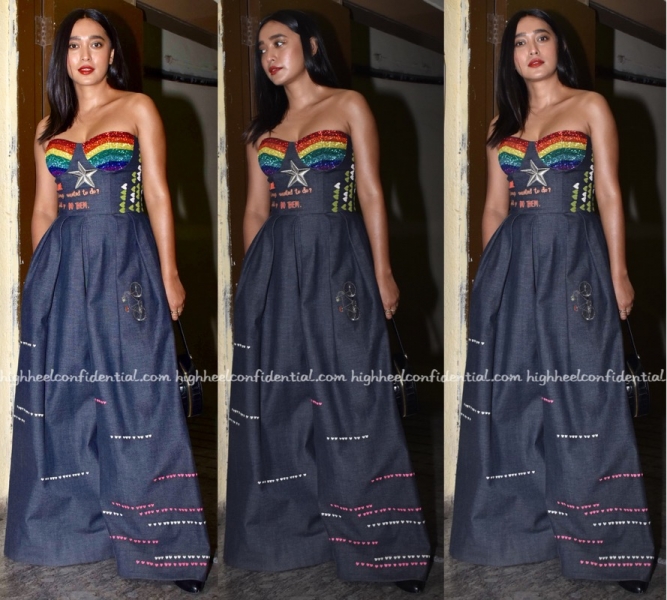 While out around town, Malaika was photographed in a Levis tee and pair of wide-legged denims. Her off-duty accessories included a Christian Louboutin X Louis Vuitton tote. And more recently, while at a soirée in Mumbai last evening, Malaika was photographed in a Christian Dior bralet that she teamed with Alexander Wang pants and a leather jacket. Her accessories for the evening included a Bottega Veneta clutch.