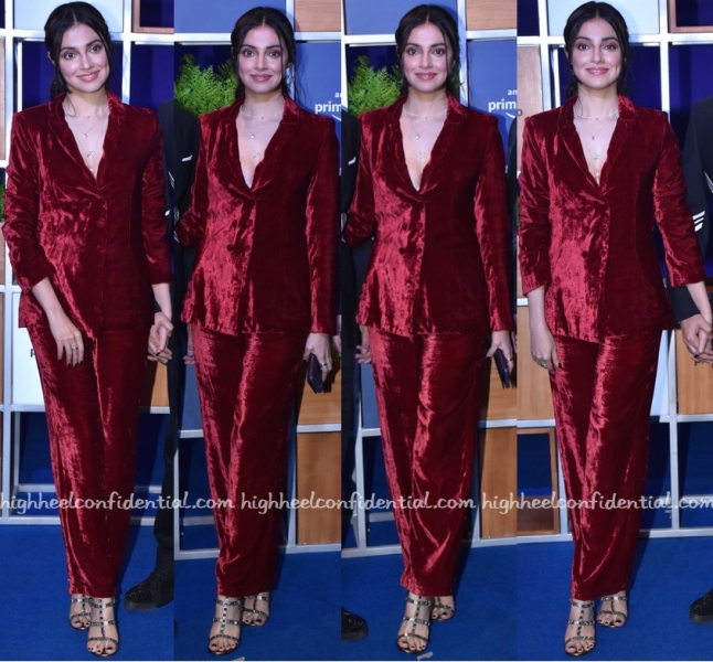 Wearing a velvet Namrata Joshipura suit with her Valentino sandals, Divya attended the recent Amazon event. This might be the best she has looked in recent times; Ms. Kumar did good.