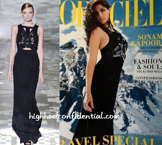 She wore an A/W 2009 Rabani and Rakha gown with jeweled details on the neck and waist. Am on the fence about this gown. I quite like the gown and it looks good on Sameera but the hair is a letdown. It’s supposed to be a soft do but looks more messy.