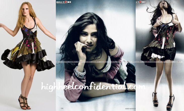 While Katrina wore this dress casually with simple sandals (she was also in character), Preeti dressed it up with pumps and a red mini Chanel bag. Whose look do you prefer more?