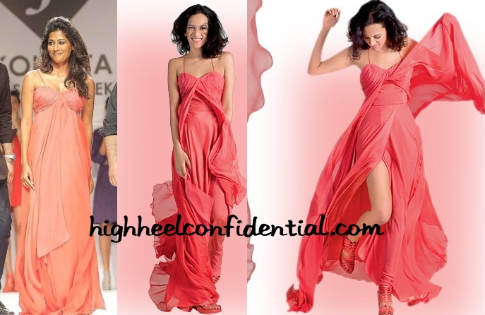 Spotted Twinkle looking fabulous in a deep pink/fuschia Badgley Mischka dress paired with beige pumps and a cream/beige B Romanek clutch at a recent party! We loved the color on her; you?