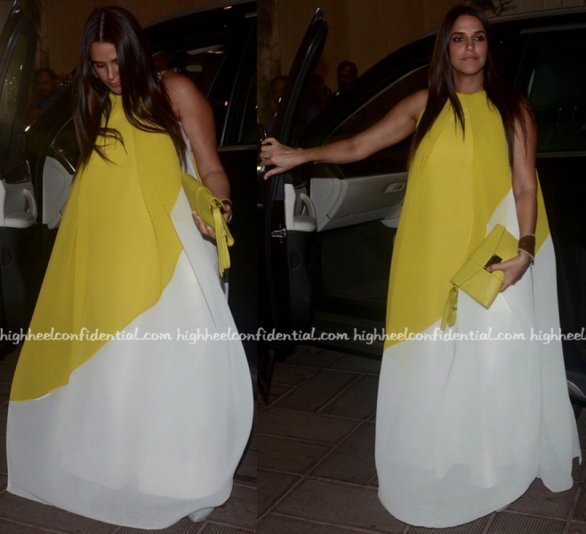 Wasn’t a fan of Pooja’s look. The dress seemed dated and her choice of accessories only made it worse. Anu looked nice but that fun dress begged for some fun accessories… The pumps and clutch were such a snooze. Of the three, will have to give this round to Sophie!