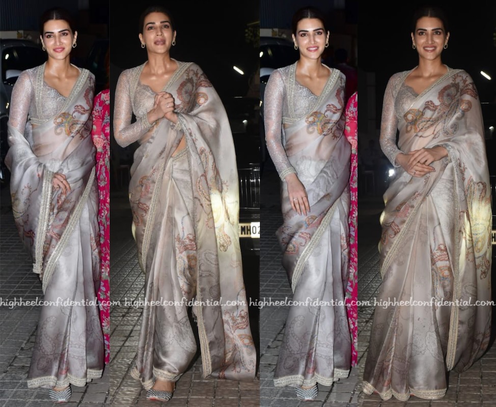 For her two recent outings, Tillotama picked green-toned outfits to wear- a NorBlack NorWhite shirt-dress to one event and a sari to another. Personally, am neither drawn to the shoes that she paired the dress with nor to the jewelry that she teamed the sari with. That said though, she does make both looks work for her. If I had to pick one, the sari would have my vote easy!