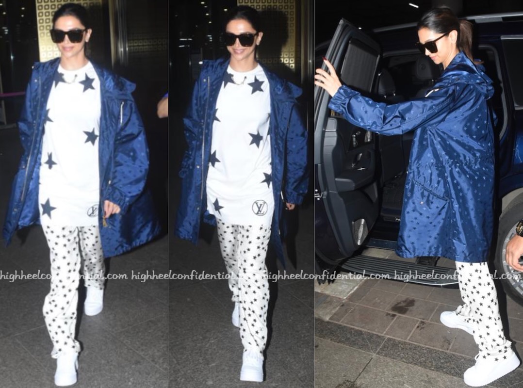 Back in Mumbai, Deepika was photographed in Louis Vuitton separates as she was exiting the airport. Despite all pieces featuring a star-print, the separates didn’t come together well. It just looked like an awkward mishmash of things!