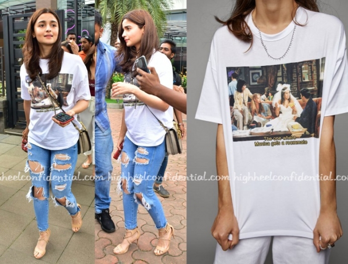 Wearing a Boutique Moschino printed dress, Tamannaah was spotted outside a local eatery in Mumbai on Saturday. The pink pumps and the grey Chanel Boy pairing worked but them glasses. Ugh. I just can’t bring myself to like this style.