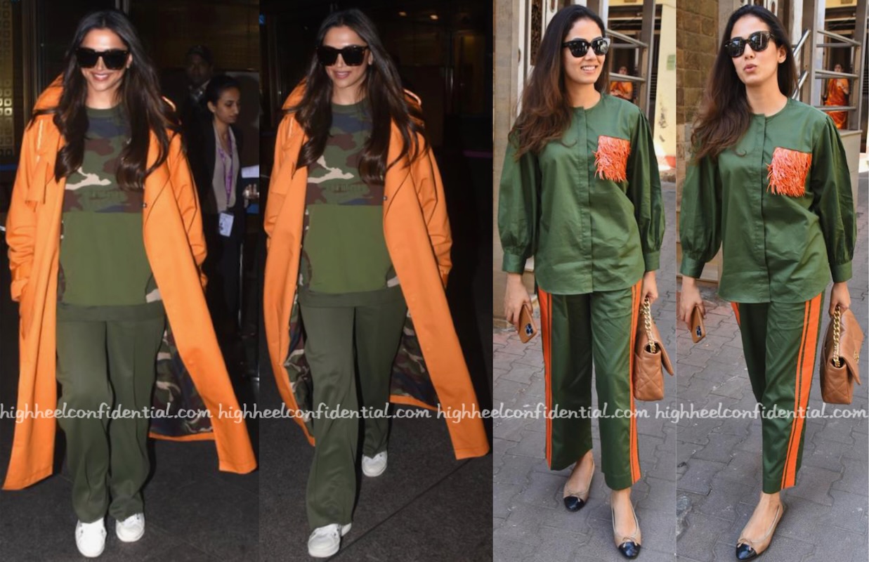Sporting similar colors (green and orange), both Deepika and Mira were photographed in Mumbai recently. While the former gave us sporty separates, the latter kept things casual in her matching co-ords set. Have a favorite?