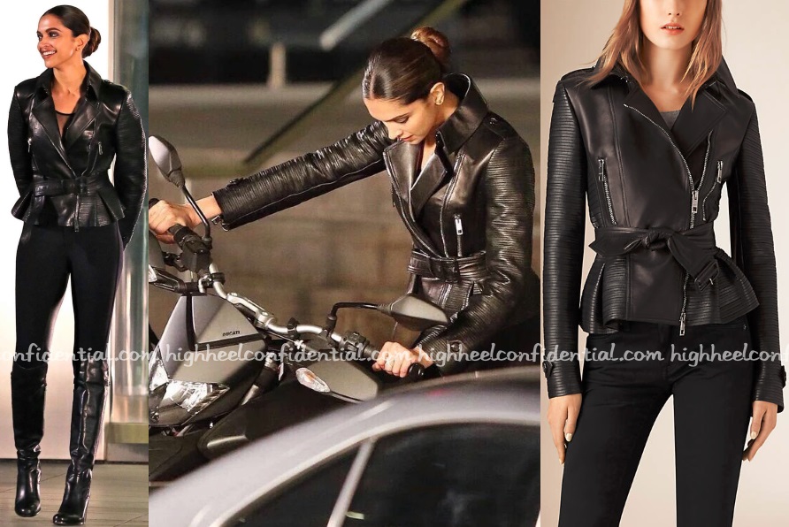 Deepika, who is busy shooting for XXX: Return Of Xander Cage, was spotted on the sets doing an all-black look in a Burberry biker jacket, leggings and boots.