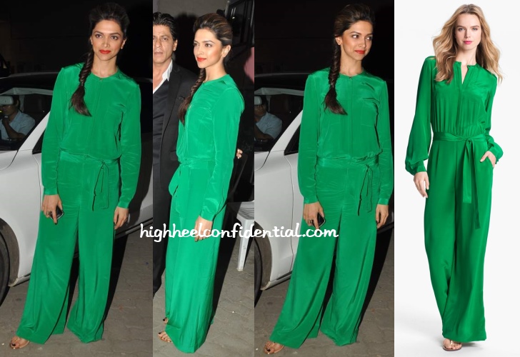 Making us green with envy in a Rachel Roy jumpsuit was Deepika pairing the look with flats and red lips. Wouldn’t change a thing!