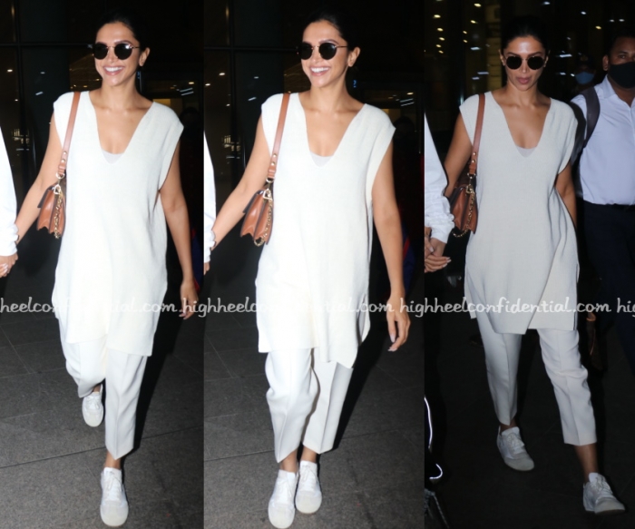 Wearing Adidas head to ankle, Deepika jetted out of Mumbai recently. Between those latex pants and the fact that she chose to wear a red cap to finish out this look, she had me seeing red! Her all-white look was so much more comfy and appropriate. Catch it inside.