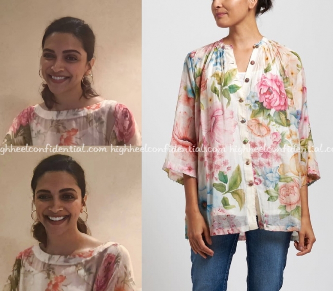 Deepika attended a video interview during quarantine for a brand that she is an ambassador for and was seen wearing a Péro floral top. Anyone else wondering if she is wearing pyjamas below? 😛