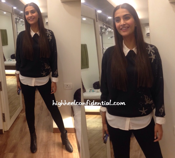 P.S. You can catch Sonam wear a black Shahin Mannan sweatshirt inside.