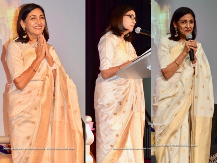 Deepti was a guest of honor at an event in Australia last week and was seen wearing a Raw Mango silk sari. She looked lovely!