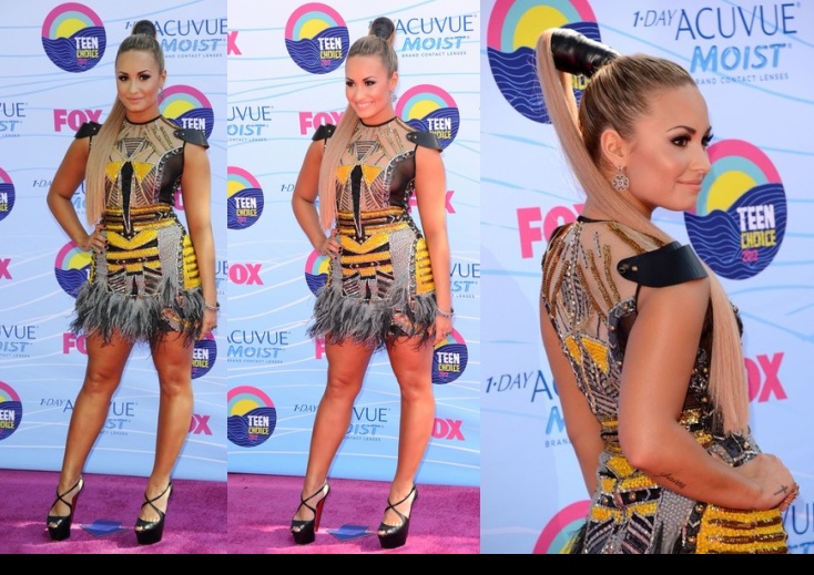 It isn’t the first time we’re seeing a Peacock on Ms. Lovato and probably isn’t the last. Having said that, like the way she styled her feather trimmed dress?