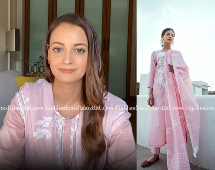 Dia hosted two live sessions on social media for World Environment day and was spotted wearing a pink suit from Drzya by Ridhi Suri.